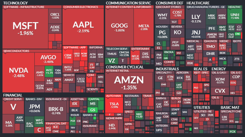 기술주 중심의 나스닥 100 지수는 1.5% 이상 하락했습니다.