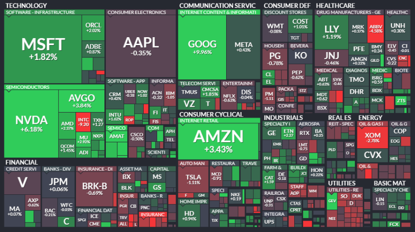 빅 테크의 강력한 실적에 힘입어 증시가 급등했습니다.