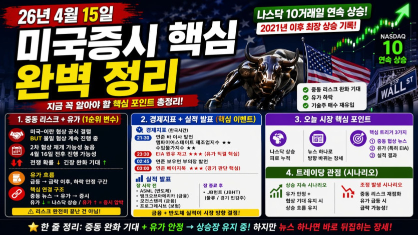 4월 15일 나스닥 상승 및 시장 핵심 정리