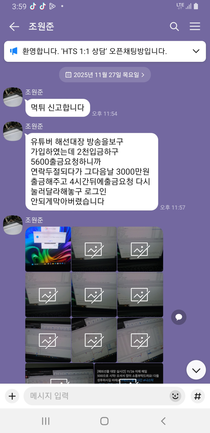 유튜브 해선대장 먹튀. 해선정보 0 2025.12.15 16:05 해당 게시물은 신고고객의 요청에 의해 공개되었습니다.유튜브 "해선대장"이라는 곳에서 거래소 가입 후 2400만원 정도의 금액을 받지 못하고, 접속금지 되신사례 입니다.해선정보는 해선정보와 위탁된 거래소만을 보증해드리고있으며 피해신고 또한 도와드리고 있습니다.안전한투자생활 되시기 바랍니다.